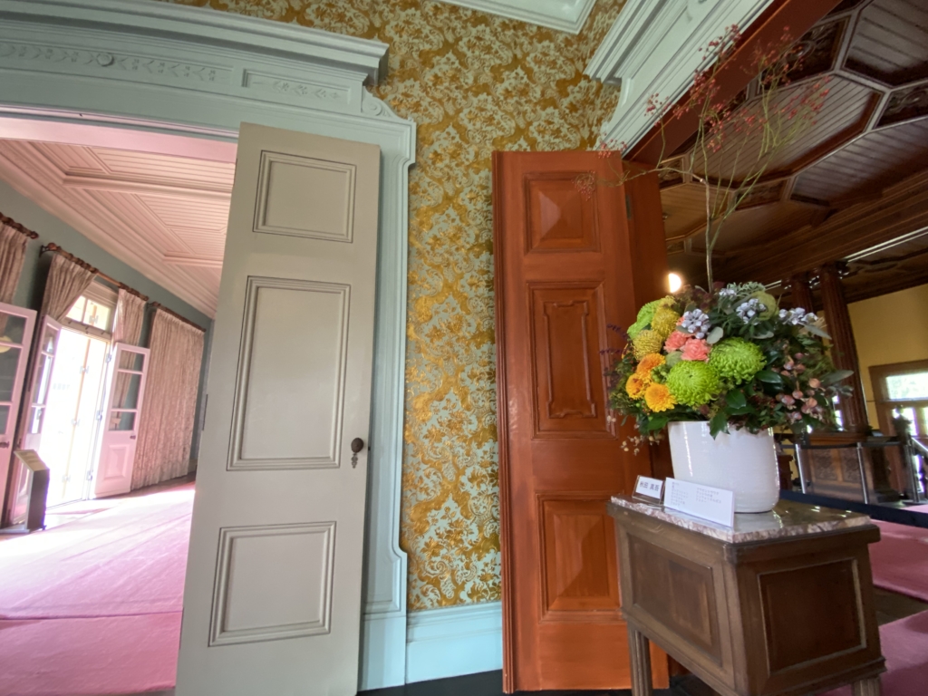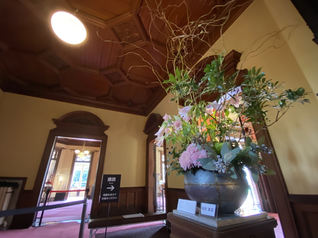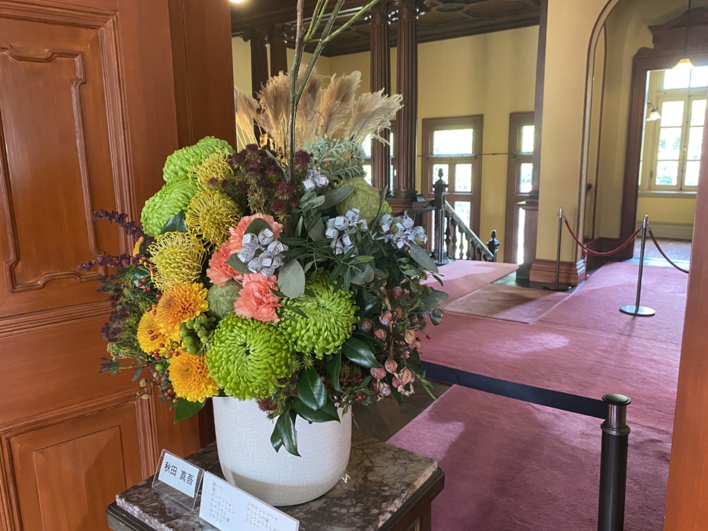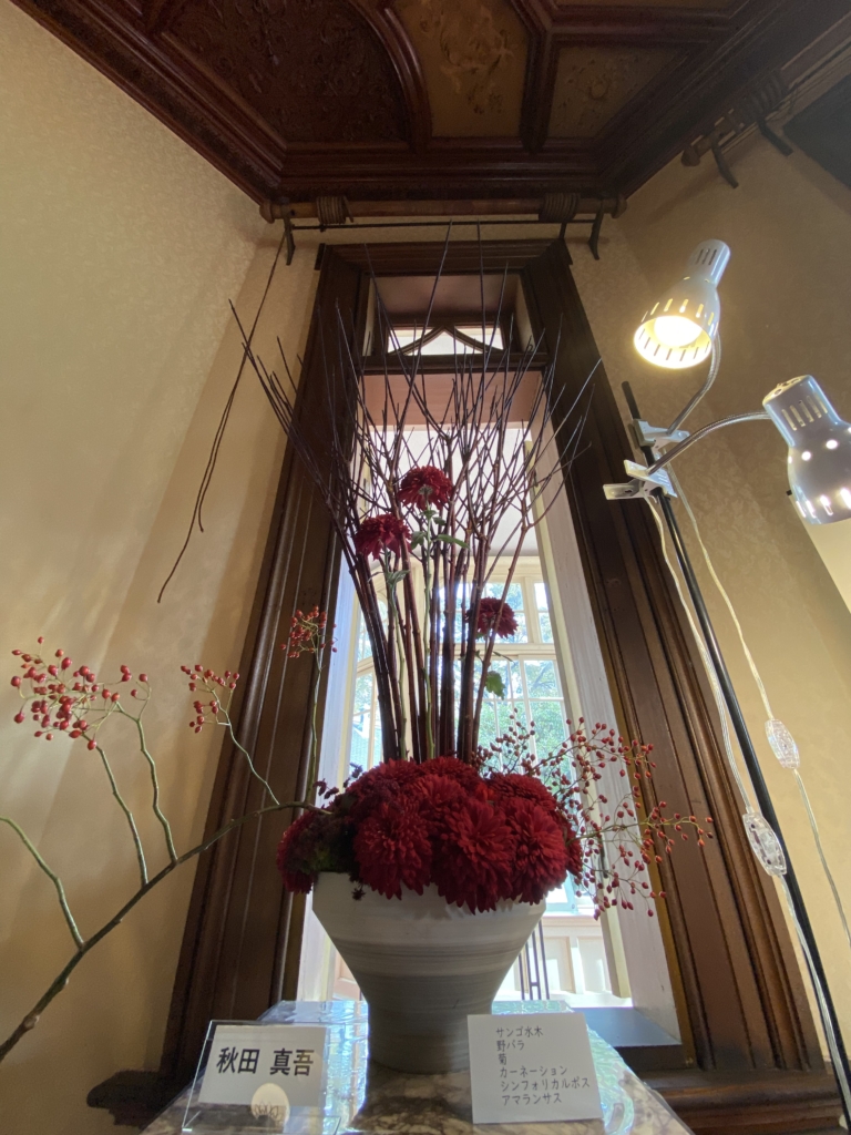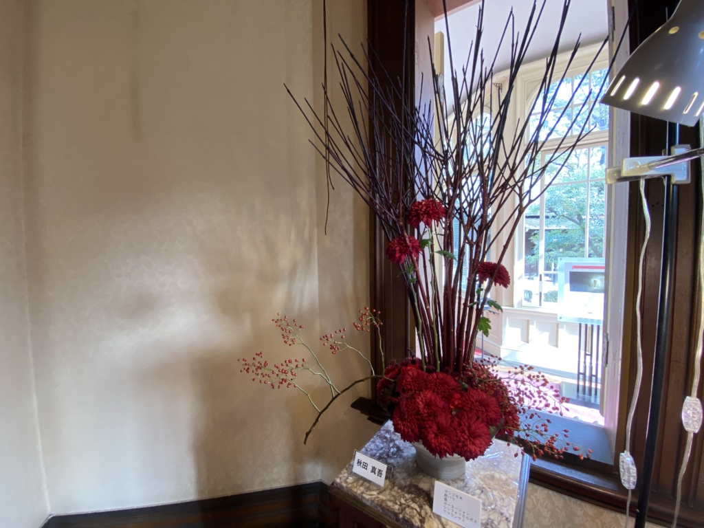 旧岩崎邸は自宅兼ゲストハウスだったわけでございます。その建築125年を記念したイベントで、HANAYAさんにお声がかかりました。HANAYAさんって祖師ヶ谷大蔵駅前にあるよくある花屋さんじゃないの?って思いますよね。2019年に開催された「フラワーデザインコンテスト」で2冠(農林水産大臣賞受賞)するなど、実は結構すごい花屋さんなんです。